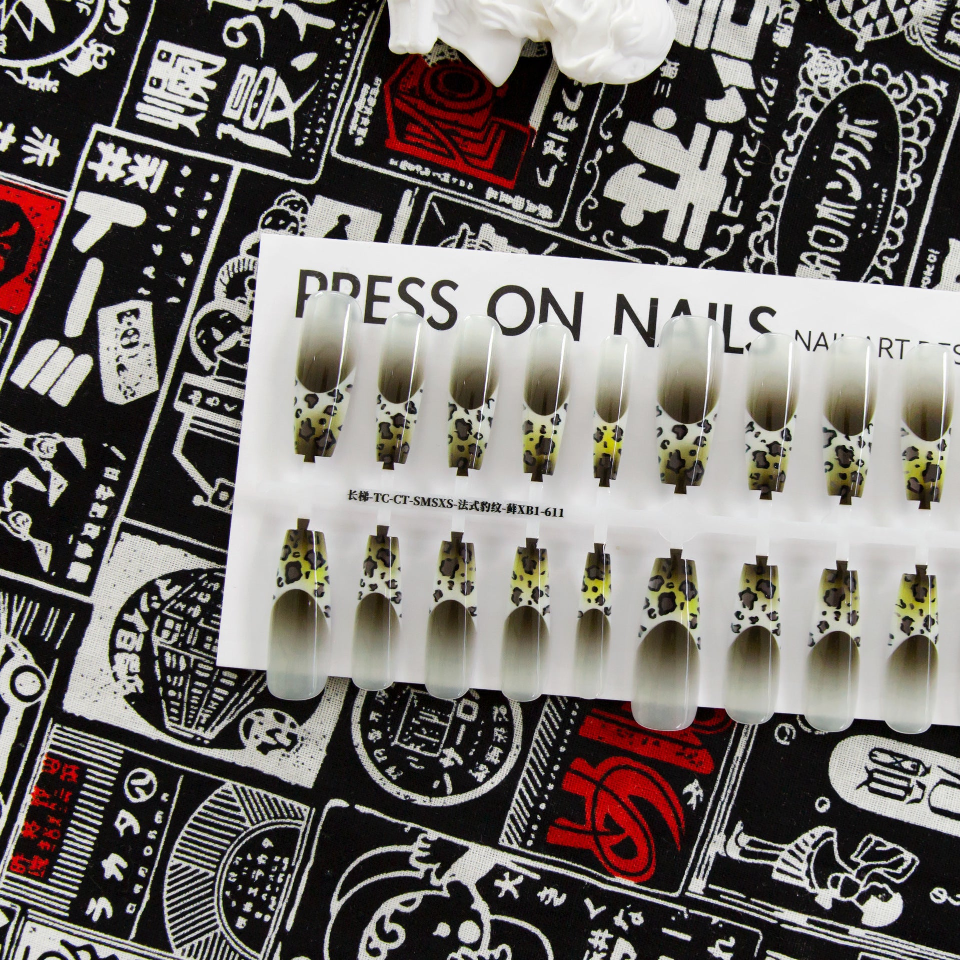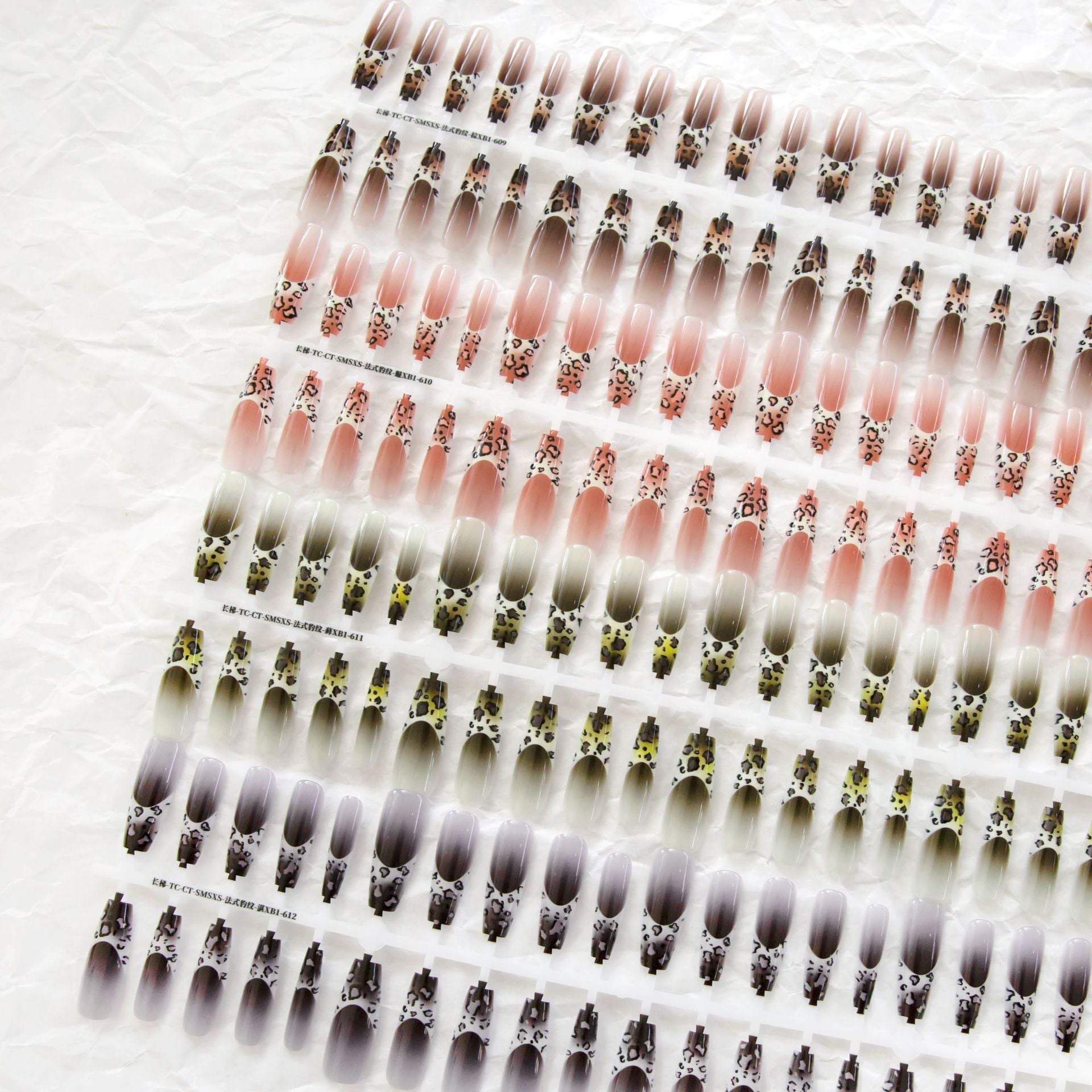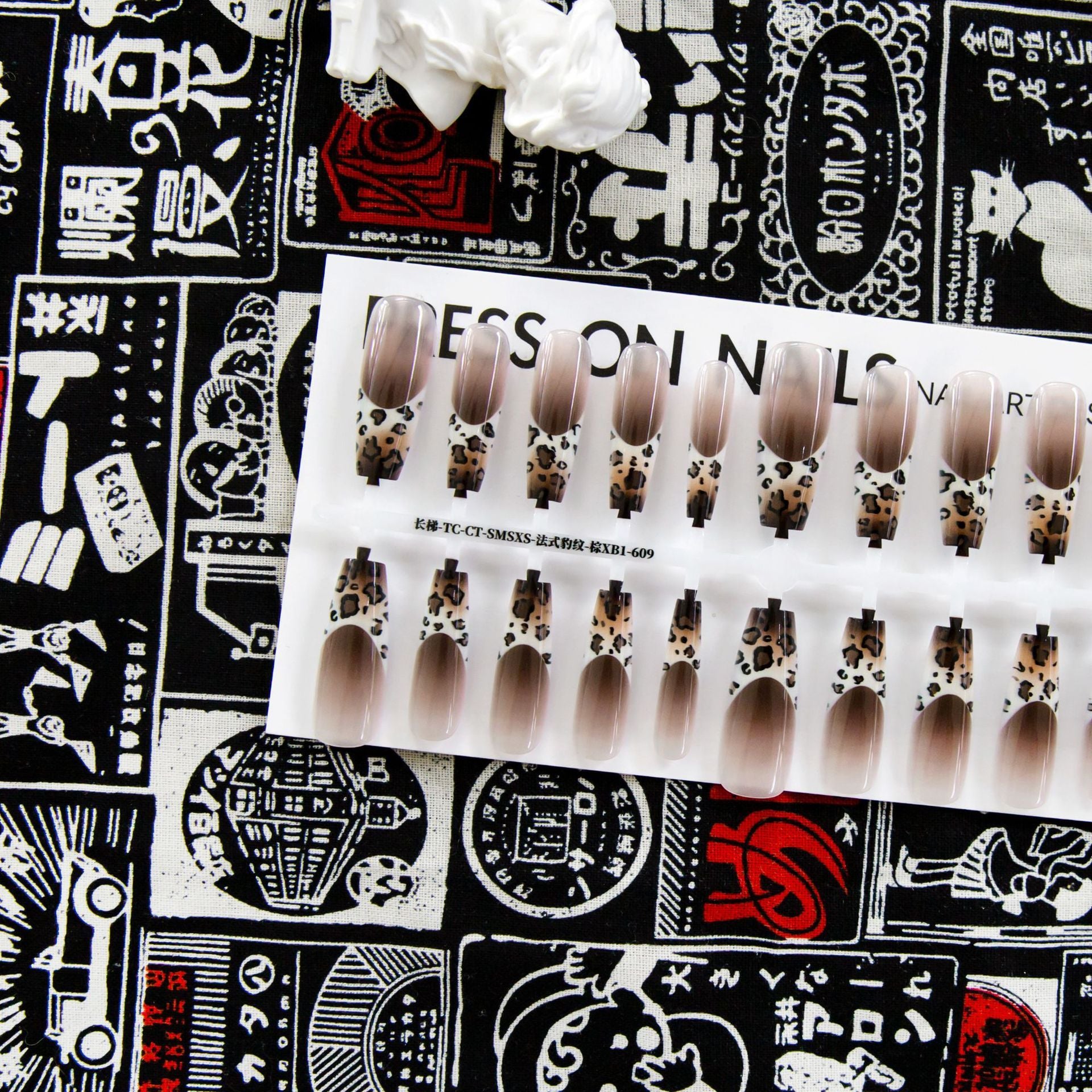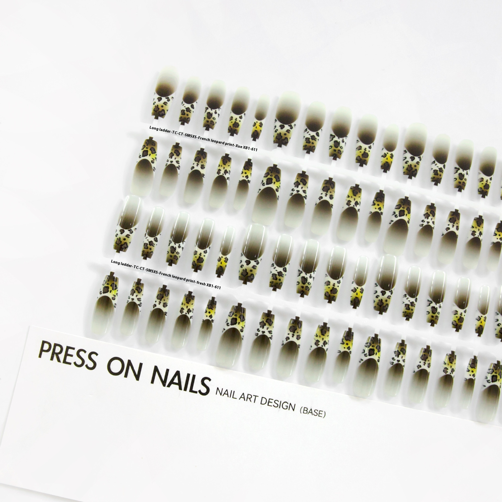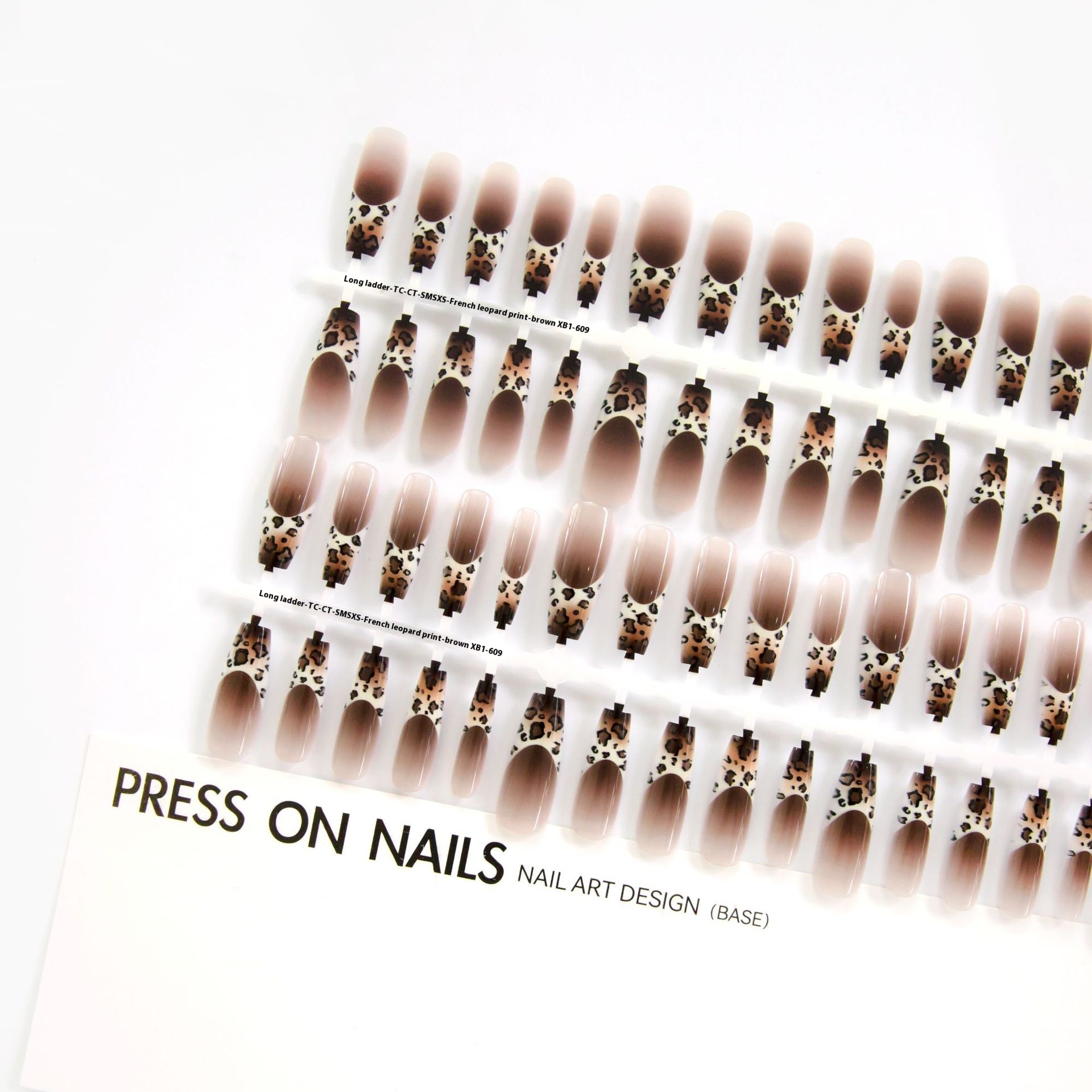 Autumn And Winter French Leopard Spots Long Ladder Nail Beauty Glossy Matte
