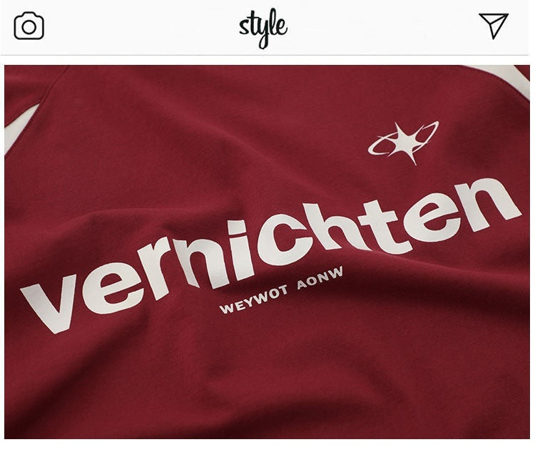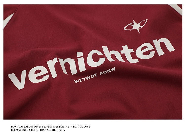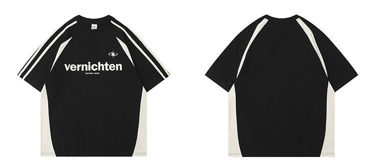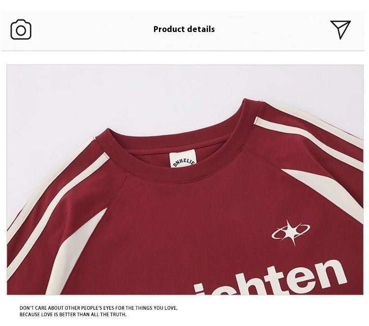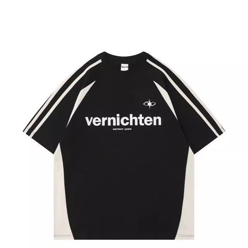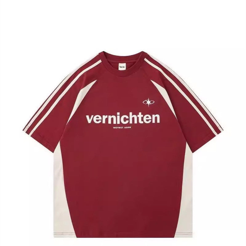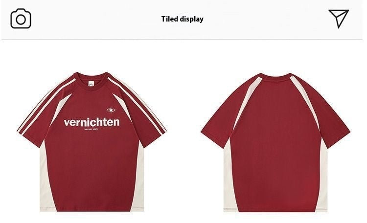 Cotton American Retro Patchwork Motorcycle Clothing Short Sleeve T-shirt
