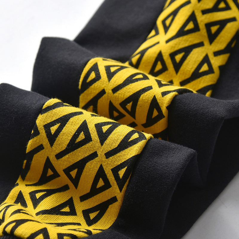 CUHK Kids Long Sleeve Printed Zipper Shirt Casual Sports Pants Set Black Two-Piece Set