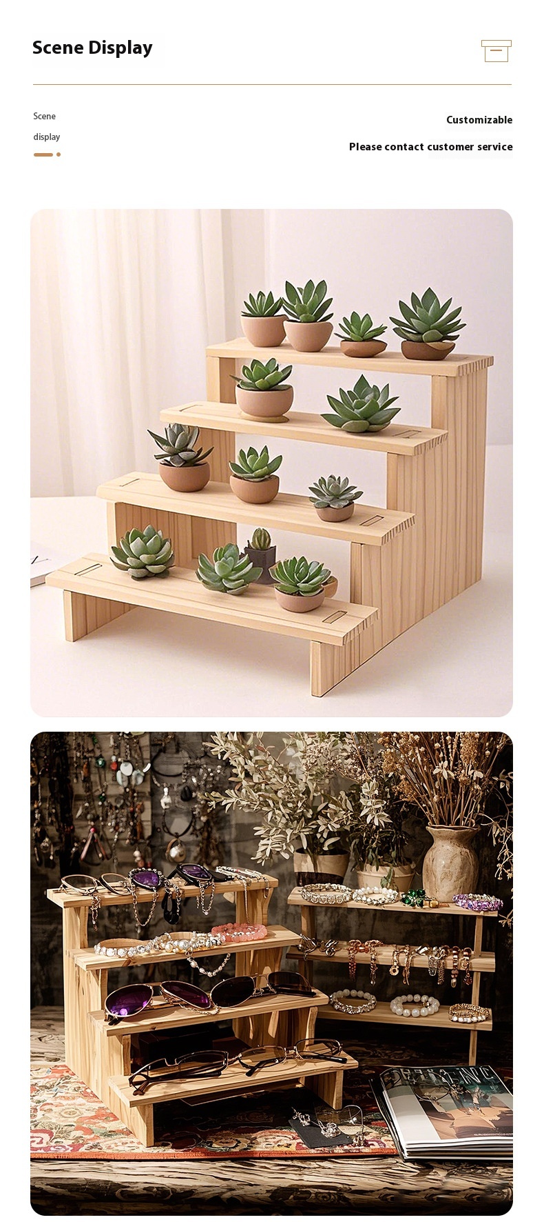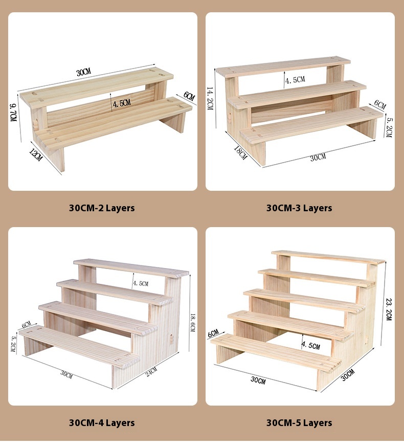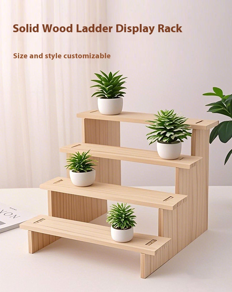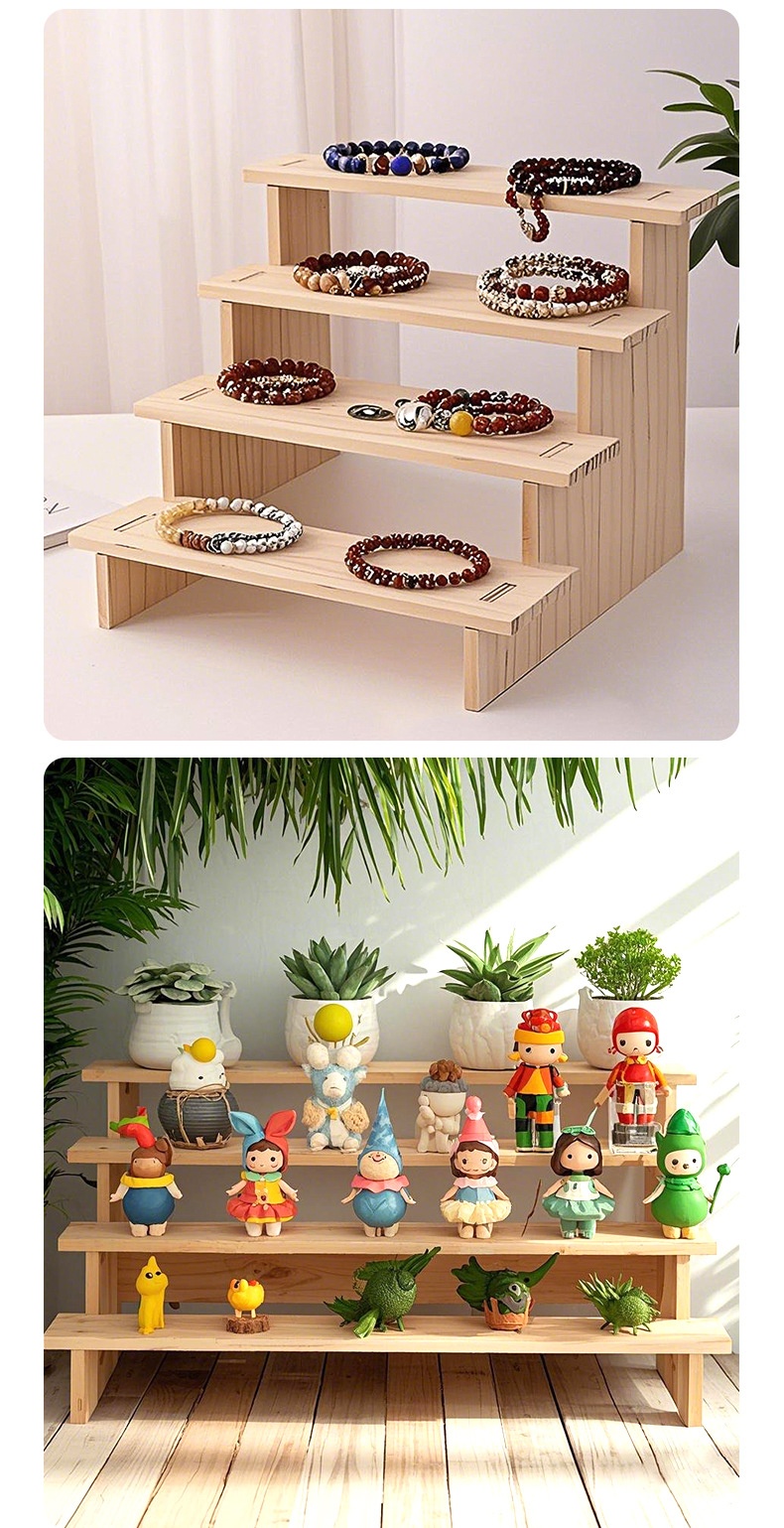 Desktop Blind Box Storage Display Stand Wooden Ladder Display Rack