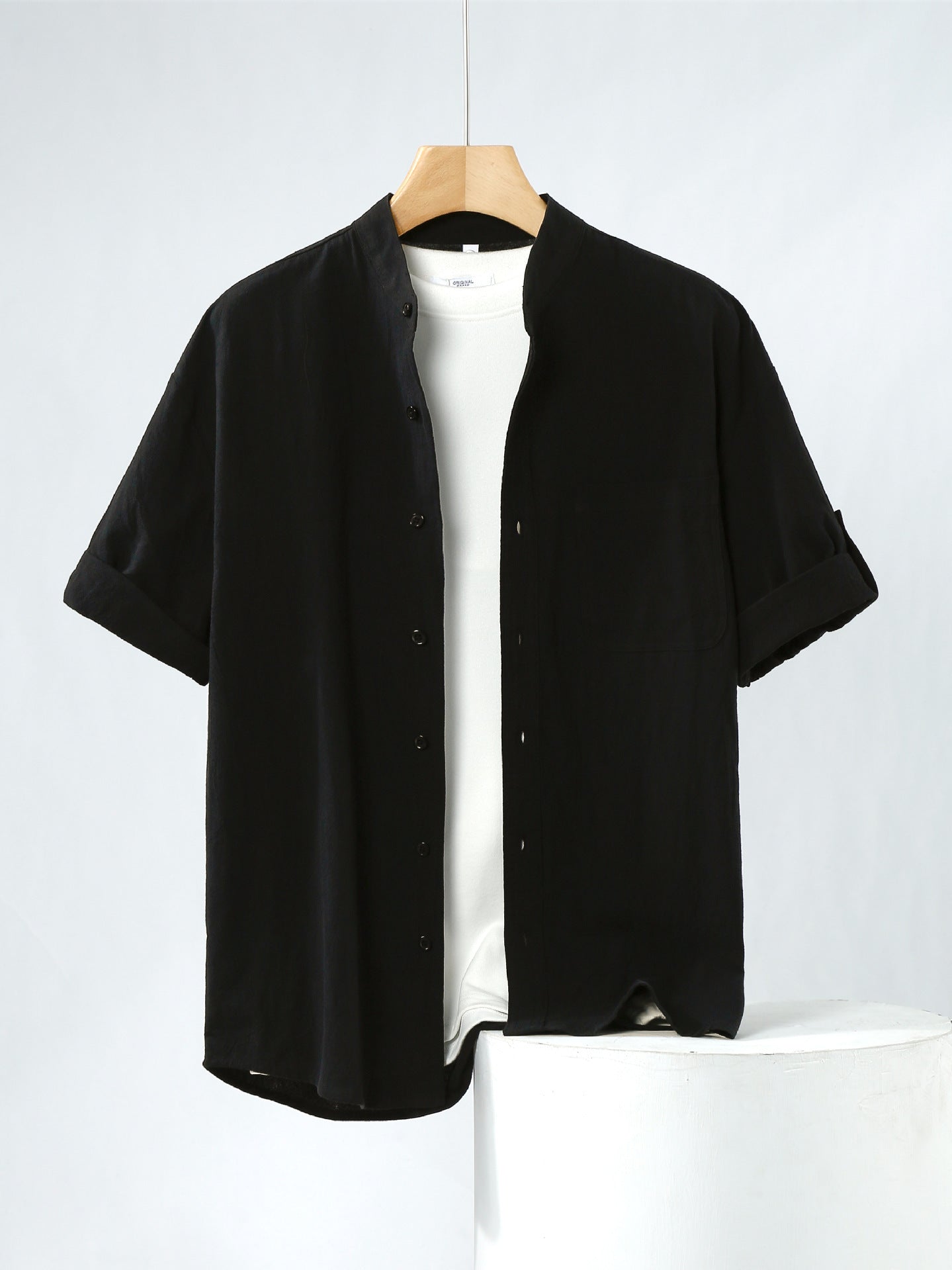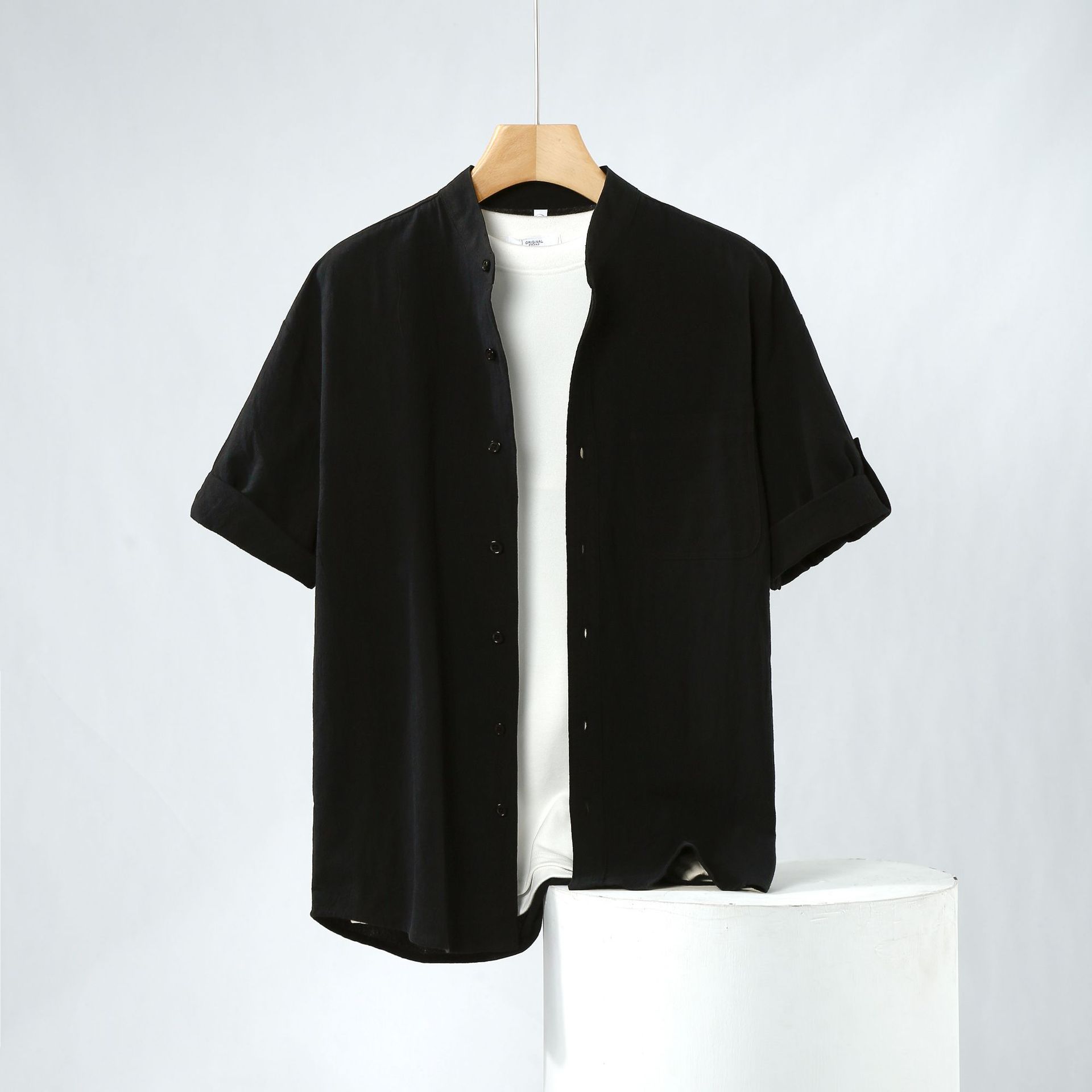 Linen Shirt Men's Short-sleeved Shirt Loose Men's Clothing Chinese Style Summer Cotton Linen Men's Solid Color Simple Stand Collar Top