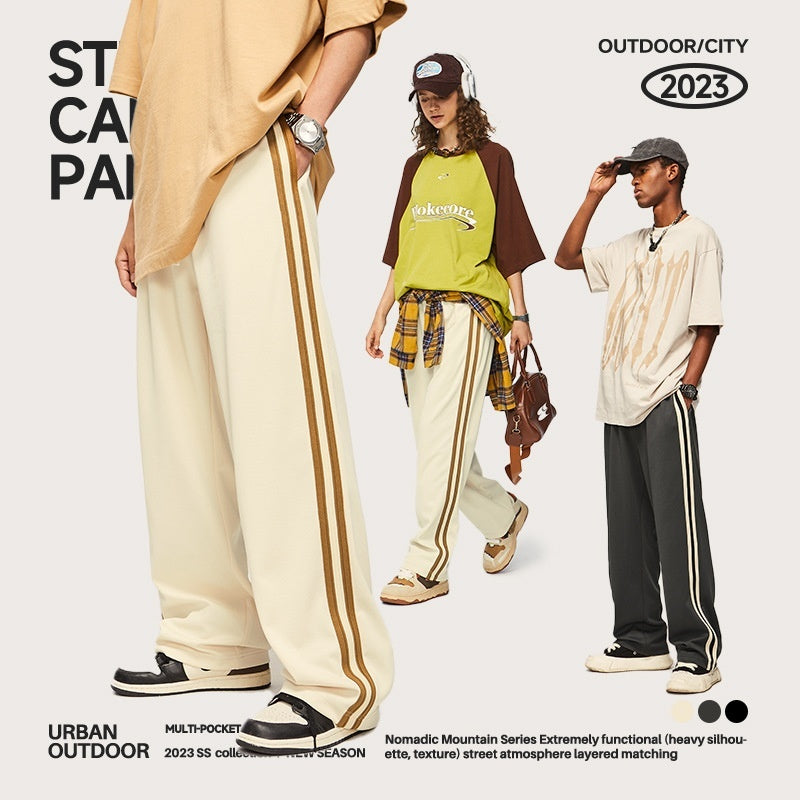 Loose Casual Men's Clothing New Oxygen Cotton Sports Ribbon Straight-leg Pants