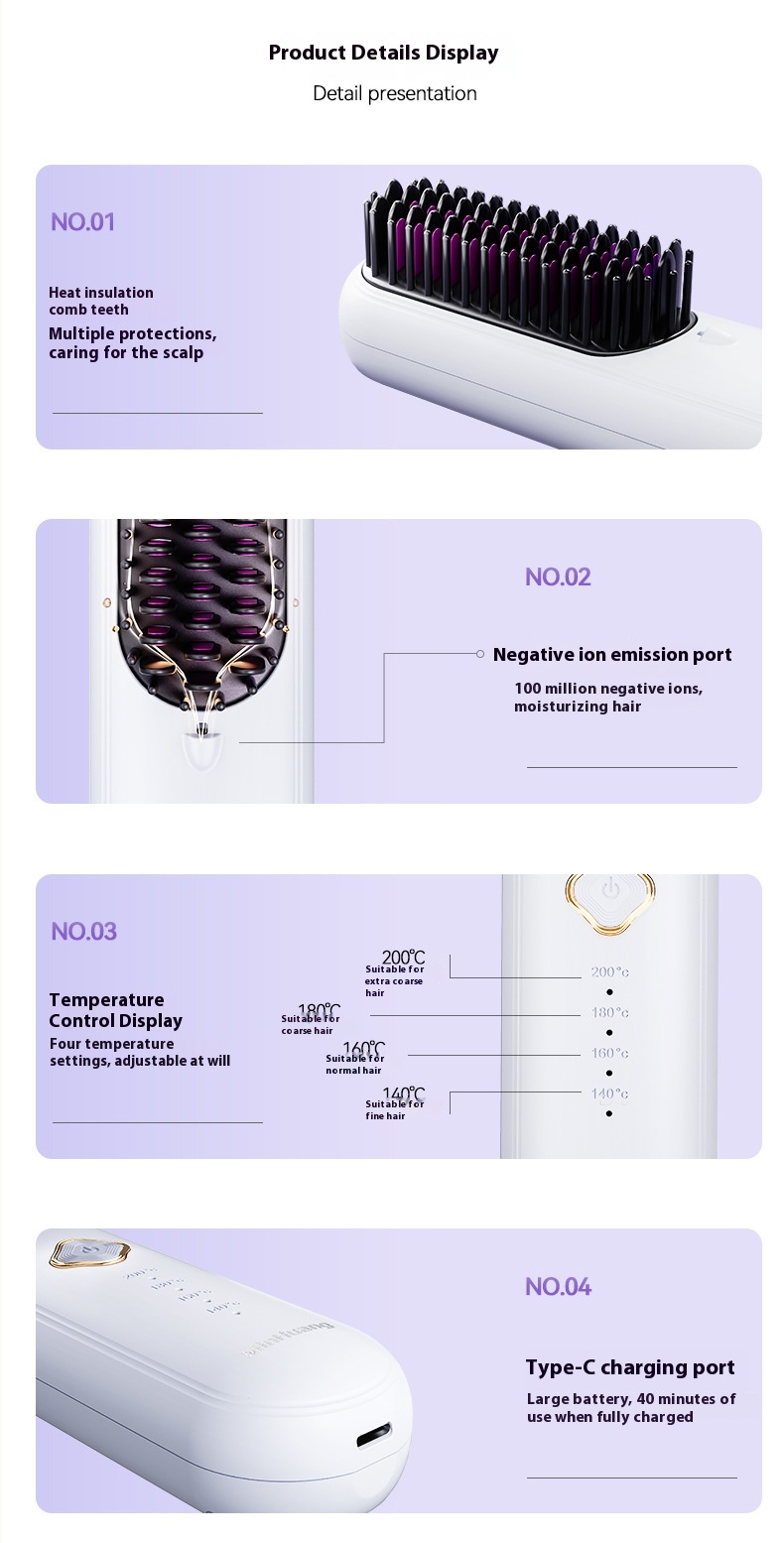 Negative Ion Does Not Hurt Hair Straight Plywood Dual-use Electric Wireless Straight Comb