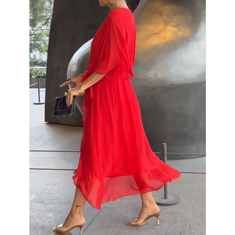 Pure Color Tied Long Dress Batwing Sleeve Irregular Dress Plus Size