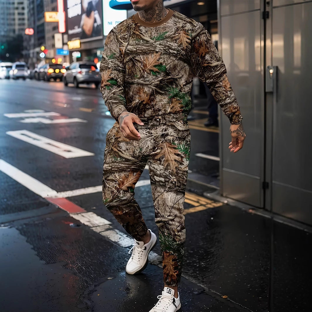 Sports Men's Clothing Casual Retro Digital Printed Round Neck Sweater Suit