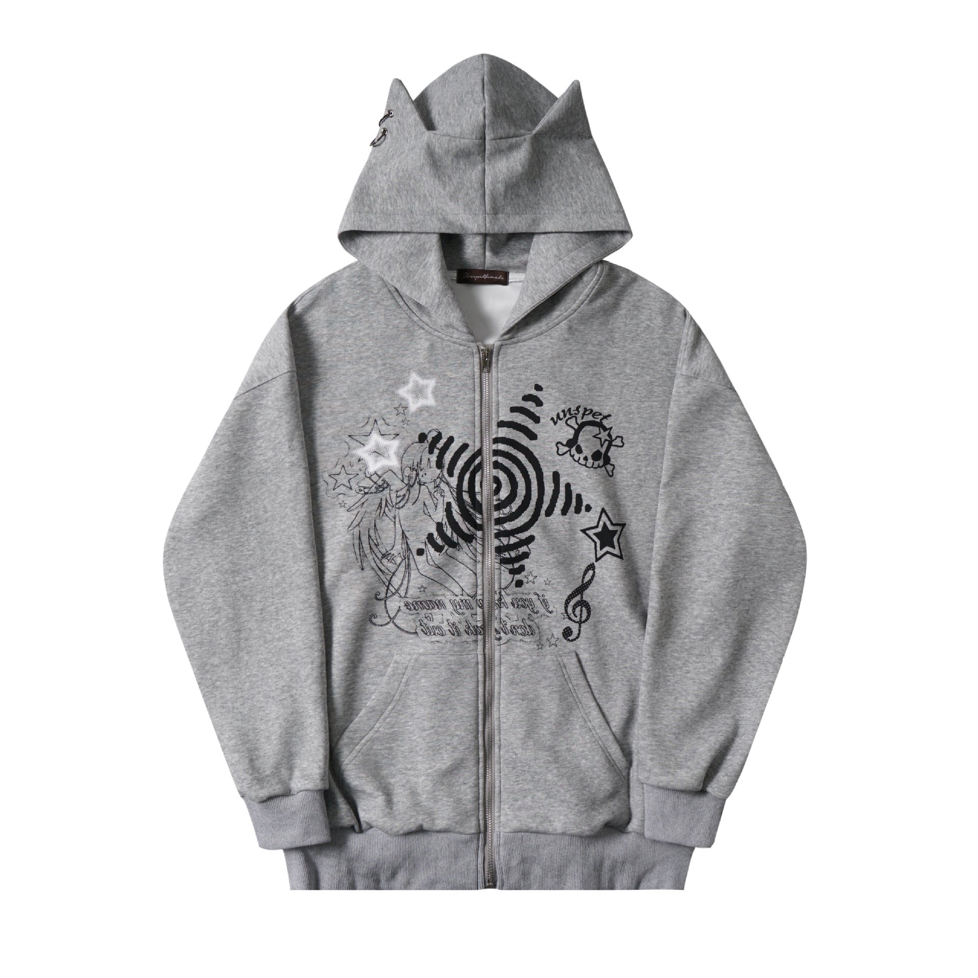 Sweet Cool Graffiti Printing Cat Ears Hooded Sweater