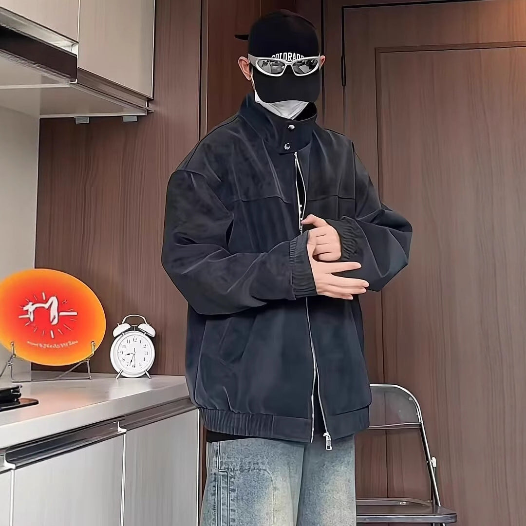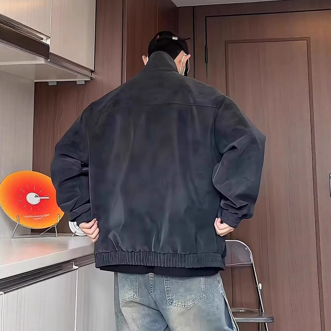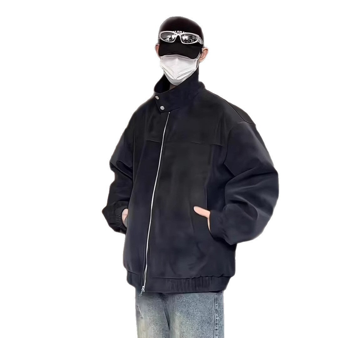 Vintage Tie-dyed PU Leather Leather Clothing With Stand Collar Jacket