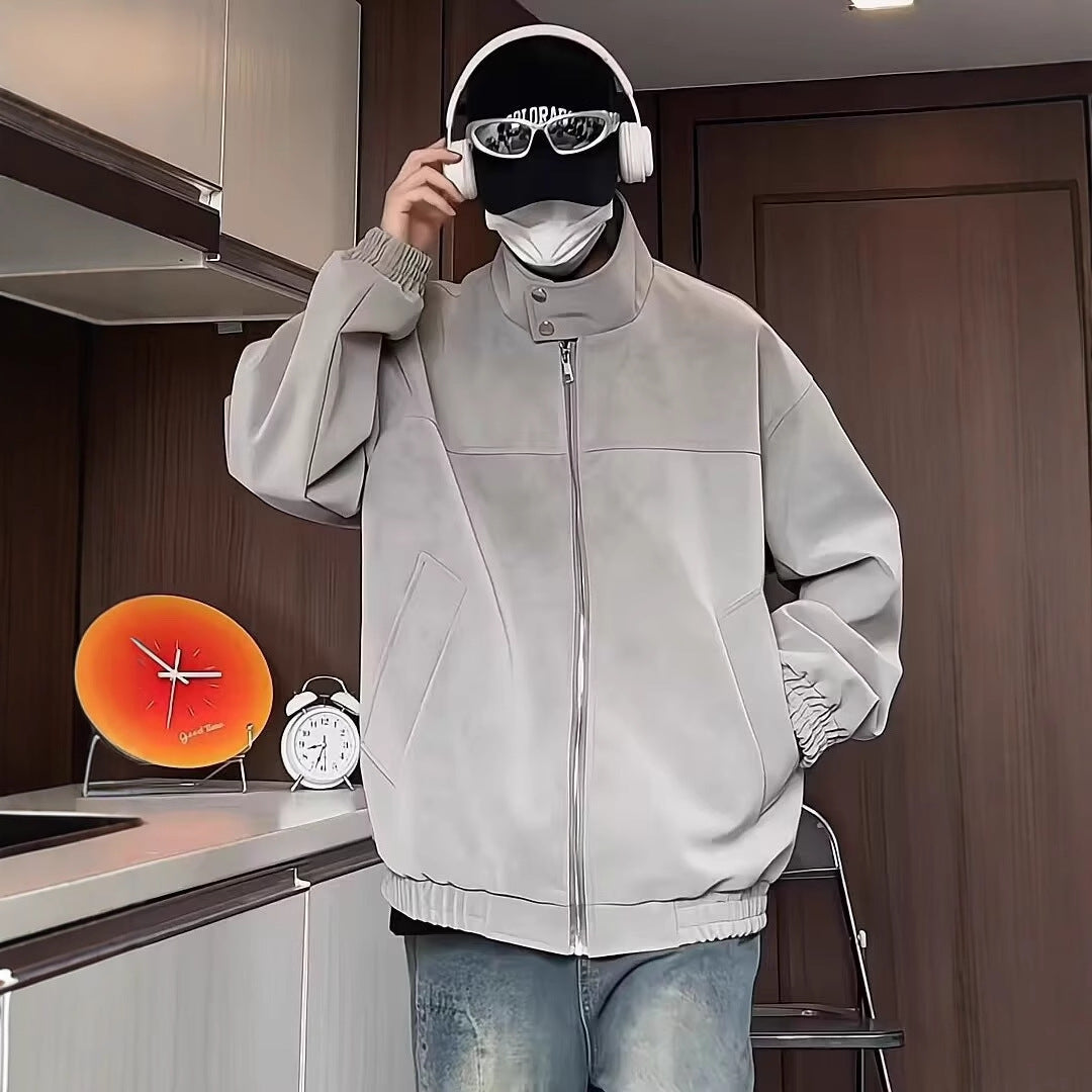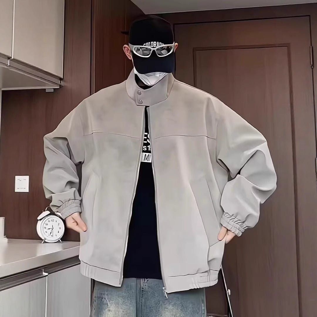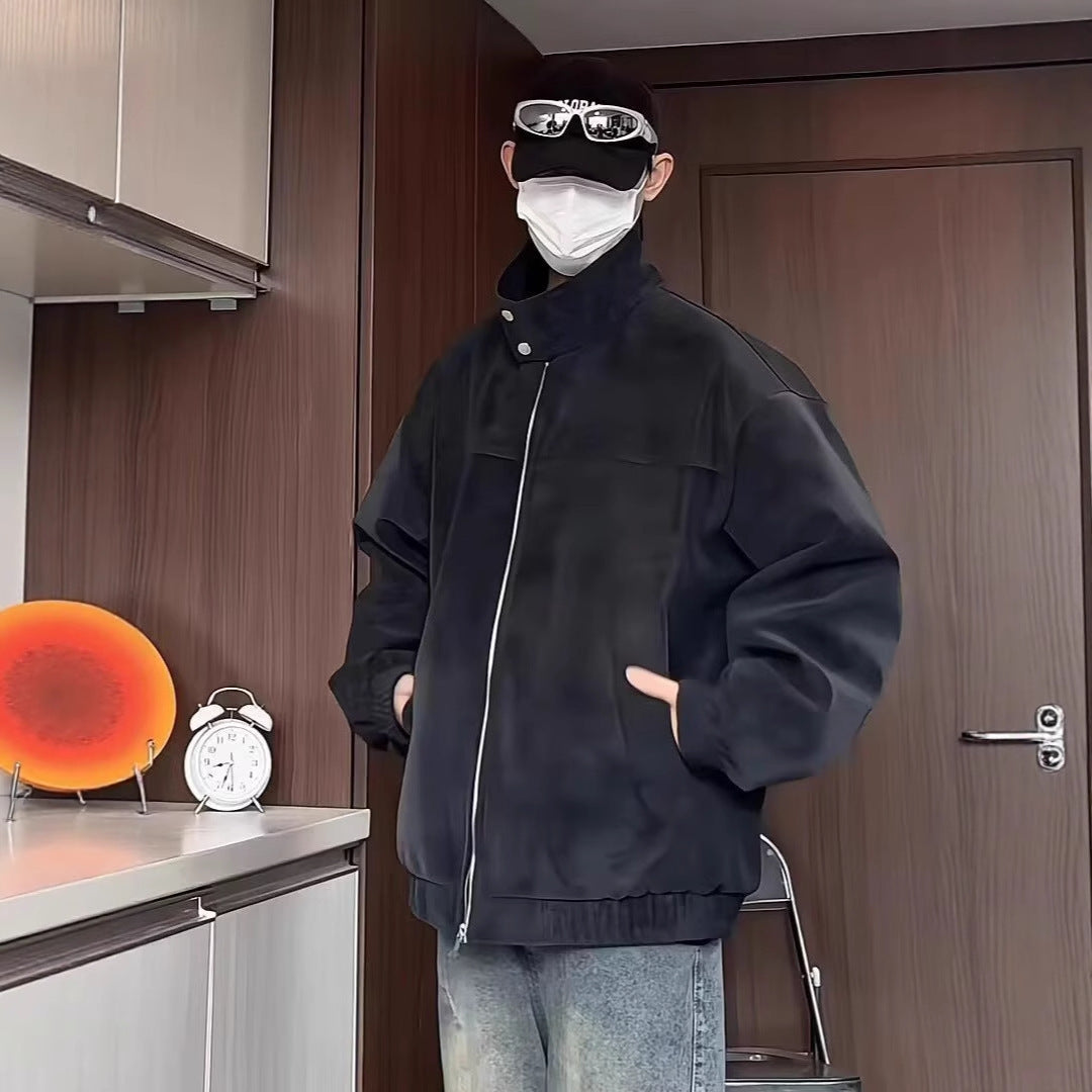Vintage Tie-dyed PU Leather Leather Clothing With Stand Collar Jacket