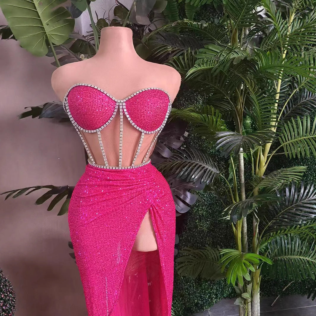 Women's Casual All-match Shiny Rhinestone Sequins Top Dress Suit